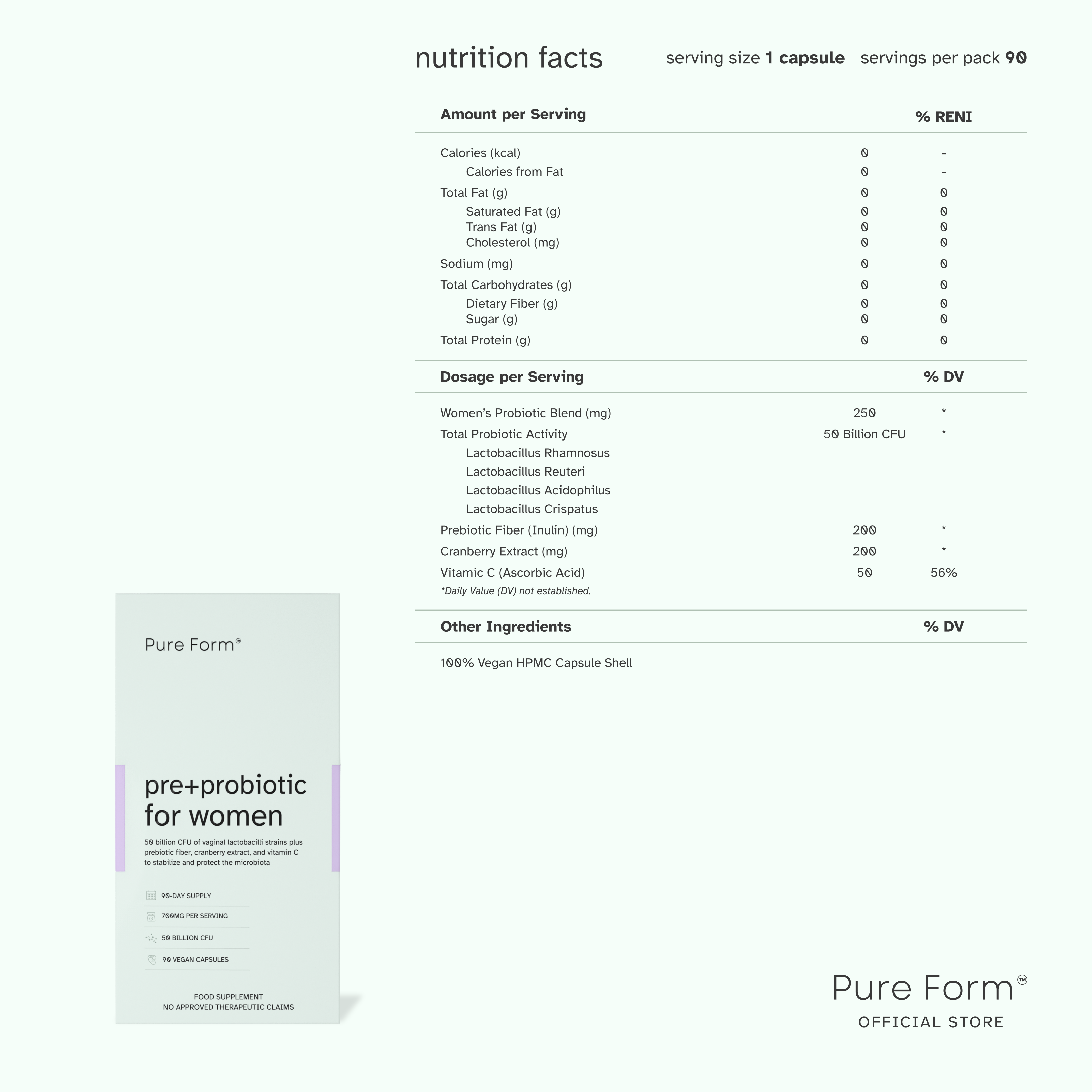 Microbiome: Pre+probiotic for women supports healthy vaginal flora and gut balance, aiding digestion, comfort, and daily confidence.