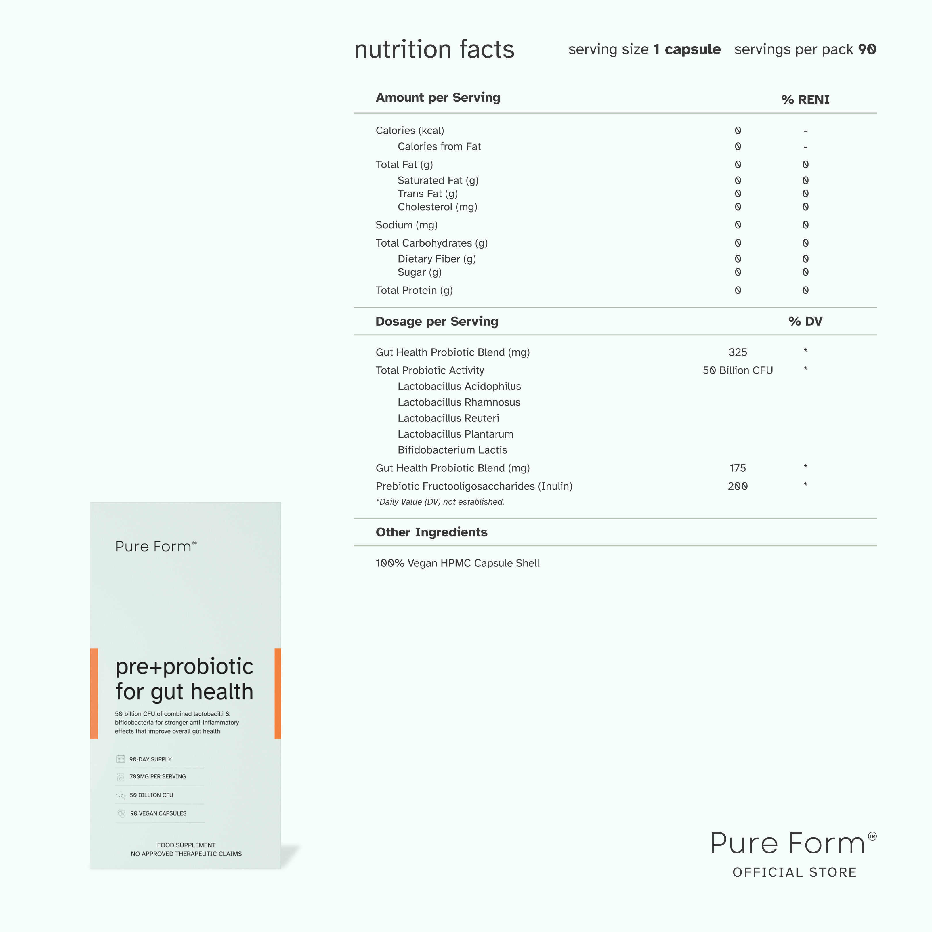 Gut Balance: Pre+probiotic for gut health supports microbiome balance, aiding digestion and nutrient absorption.